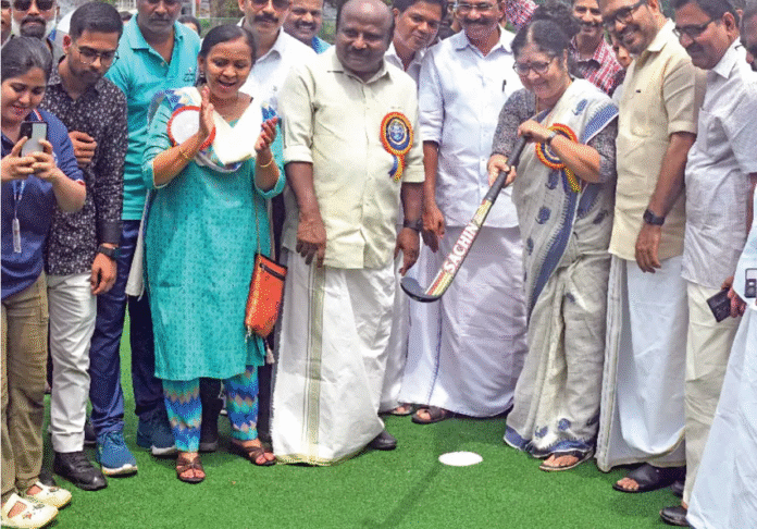 കേരളത്തിന്റെ കായികകുതിപ്പിന് കരുത്തുപകർന്ന് മഹാരാജാസിൽ അന്താരാഷ്ട്ര നിലവാരത്തിലുള്ള ഹോക്കി ടർഫ്. ഉദ്ഘാടനശേഷം ഉന്നതവിദ്യാഭ്യാസമന്ത്രി ആർ ബിന്ദുവും തദ്ദേശസ്വയംഭരണമന്ത്രി എം ബി രാജേഷും ടർഫിലെ പോസ്റ്റിൽ ഗോളടിച്ചു. മഹാരാജാസ് ഹോക്കി ടർഫ് കേരളത്തിന്റെ കായിക ഭൂപടത്തിലെ പുതിയ അടയാളപ്പെടുത്തലാകുമെന്ന് ഉദ്ഘാടനം ചെയ്ത മന്ത്രി ആർ ബിന്ദു പറഞ്ഞു. മന്ത്രി എം ബി രാജേഷ് അധ്യക്ഷനായി. ടി ജെ വിനോദ് എംഎൽഎ, മേയർ എം അനിൽകുമാർ എന്നിവർ മുഖ്യാതിഥികളായി. കൗൺസിലർ പത്മജ എസ് മേനോൻ, സിഎസ്എംഎൽ സിഇഒ ഷാജി വി നായർ, എംജി സർവകലാശാല സിൻഡിക്കറ്റ് അംഗം ഡോ. ടി വി സുജ, കോളേജ് പ്രിൻസിപ്പൽ ഇൻ ചാർജ് ഡോ. ജി എൻ പ്രകാശ്, ഗവേണിങ് ബോഡി അംഗം ഡോ. എം എസ് മുരളി, കായികവിഭാഗം അധ്യക്ഷ റീന ജോസഫ്, എൻ വി വാസു എന്നിവർ സംസാരിച്ചു. ഹോക്കിയിൽ കേരളത്തിന്റെ മുന്നേറ്റത്തിനും പി ആർ ശ്രീജേഷിനെപ്പോലുള്ള താരങ്ങളെ വാർത്തെടുക്കാനും ടർഫ് മുതൽക്കൂട്ടാകും. സർക്കാർ സ്ഥാപനമായ സ്പോർട്സ് കേരള ഫൗണ്ടേഷനായിരുന്നു പദ്ധതിയുടെ നിർവഹണച്ചുമതല. സിഎസ്എംഎല്ലിന്റെ ഫണ്ട് ഉപയോഗിച്ച് ഗ്രേറ്റ് സ്പോർട്സ് ഇൻഫ്ര പ്രൈവറ്റ് ലിമിറ്റഡ് ആണ് നിർമിച്ചത്.